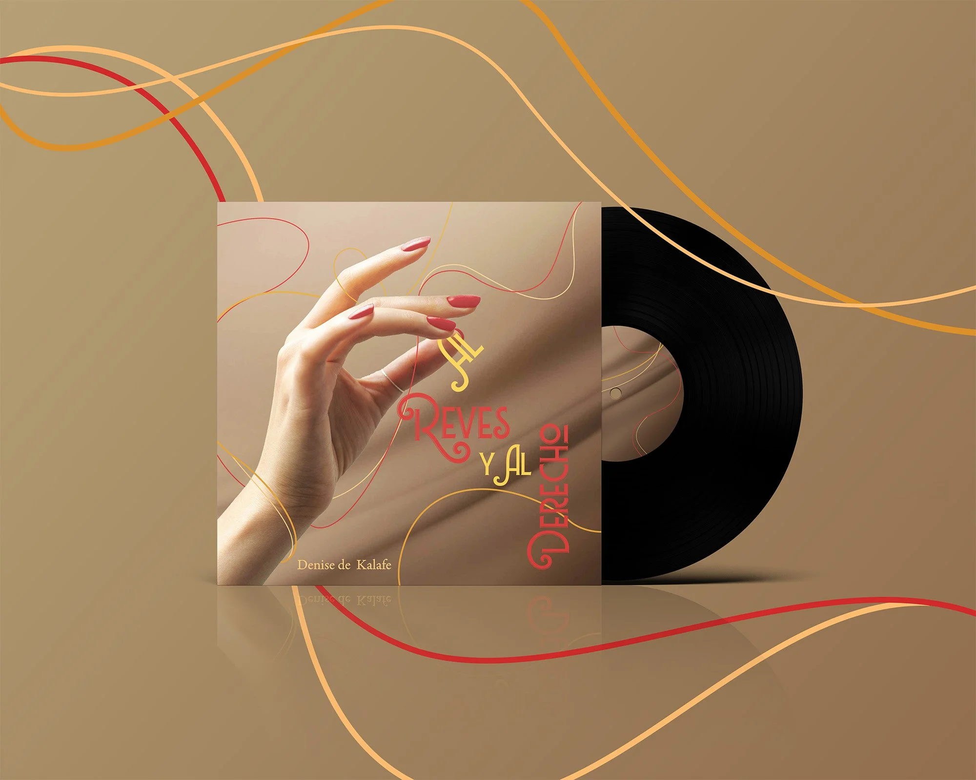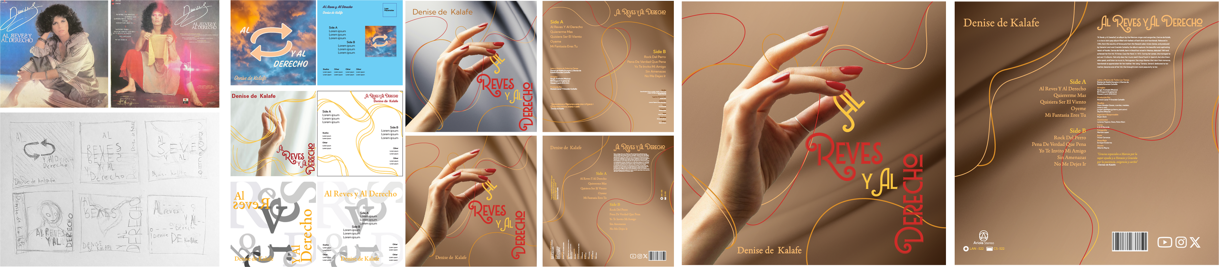 I chose the typefaces, Lubaline, Adobe Aldine, and Kumbh Sans for this project. Lubaline was uused to give an elegant and decorative appearance to the title, fitting the playfulness of the layout of the hand figure holding the “Al” from the title. Adobe Aldine, being a serif type, allowed for me to implement common type seen in 80s Latin Pop covers, and Kumbh Sans worked to give the modern and clear type allowing for smaller text to be legible and also a way to implement the final logo’s typeface into the album cover design.